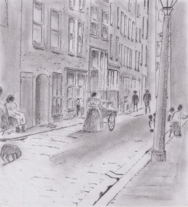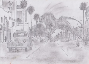 2014Vorm een flatgebouw dat met de sloop wordt bedreigd om tot een cruiseschip. De tekening is een fantasie gebaseerd op een idee om het flatgebouw om te bouwen tot een cruiseschip